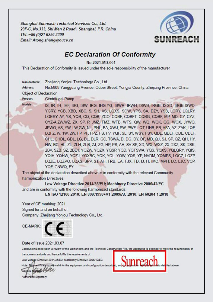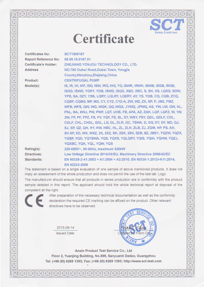CE 国际产品认证(离心泵)