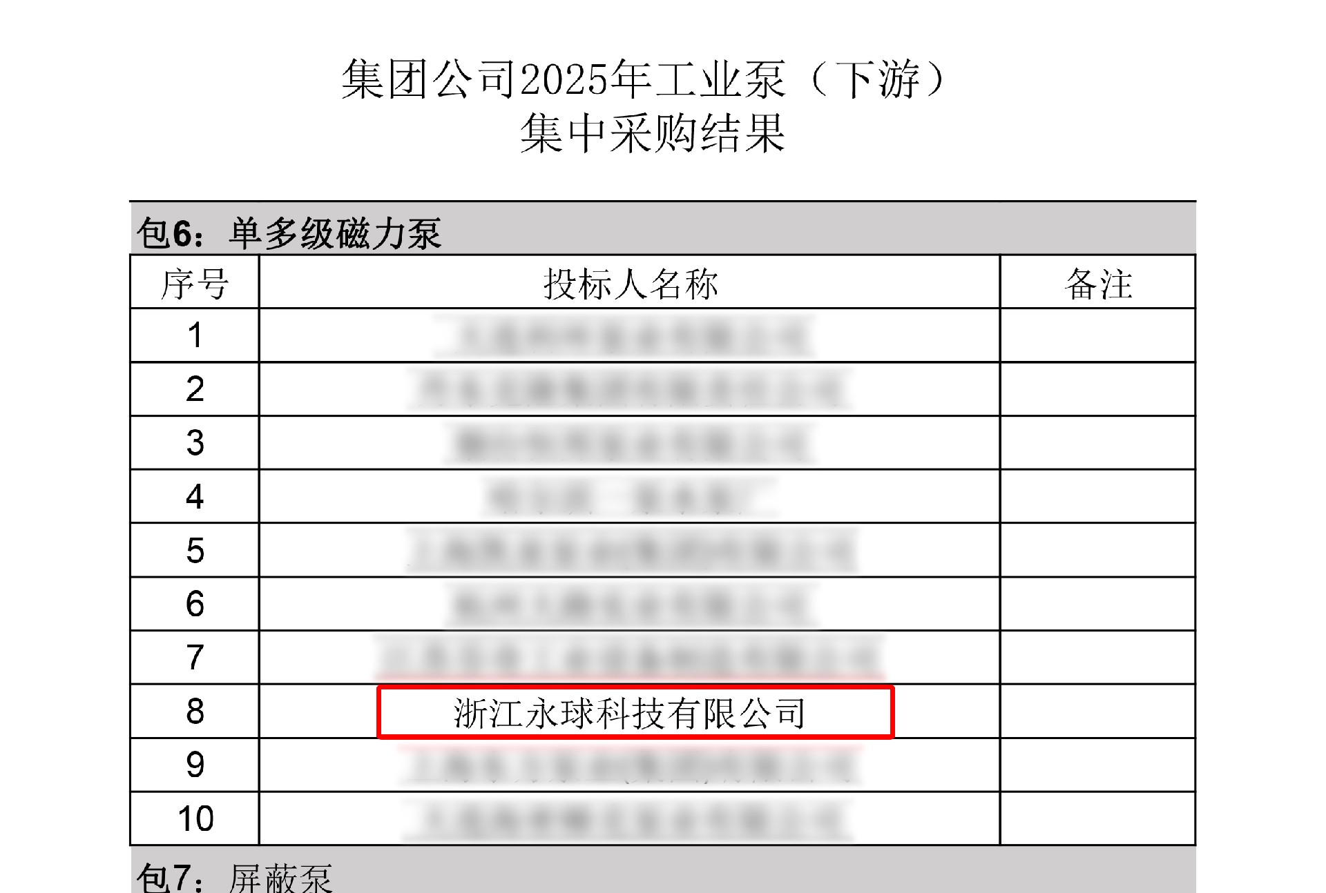 硬核实力认证!永球成功中标中石油2025工业泵集中采购项目