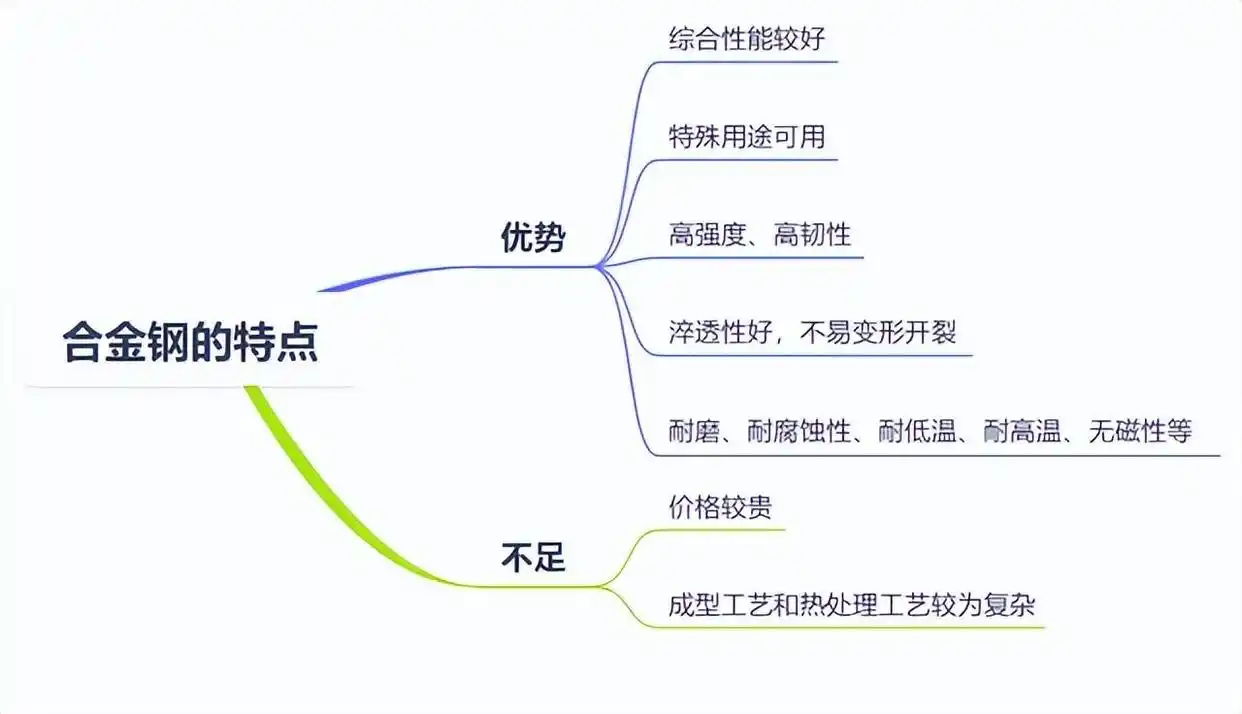 合金钢:指含有一种或多种适量的合金元素,因而具有较好或特殊性能的钢。