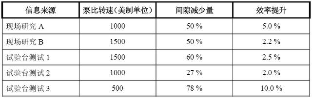 案例2:文献[1]还研究了不同比转速、不同间隙减少所带来的泵最佳效率点效率的提升值,详见表2。