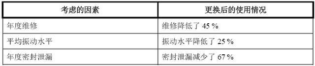 案例1:对北美炼油厂61台泵更换间隙减小的非金属耐磨环后的维修数据、振动及密封泄漏的研究结果,见表1 [1]。