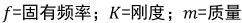 物体的固有频率和物体的质量成反比,和刚性成正比,表达式为: