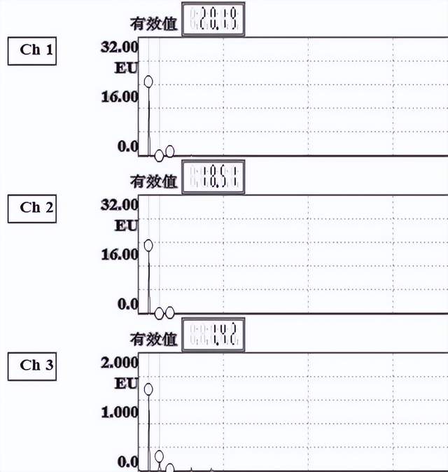 脱开泵与电机之间的联轴器,进行电机空载测试,频谱见图2。